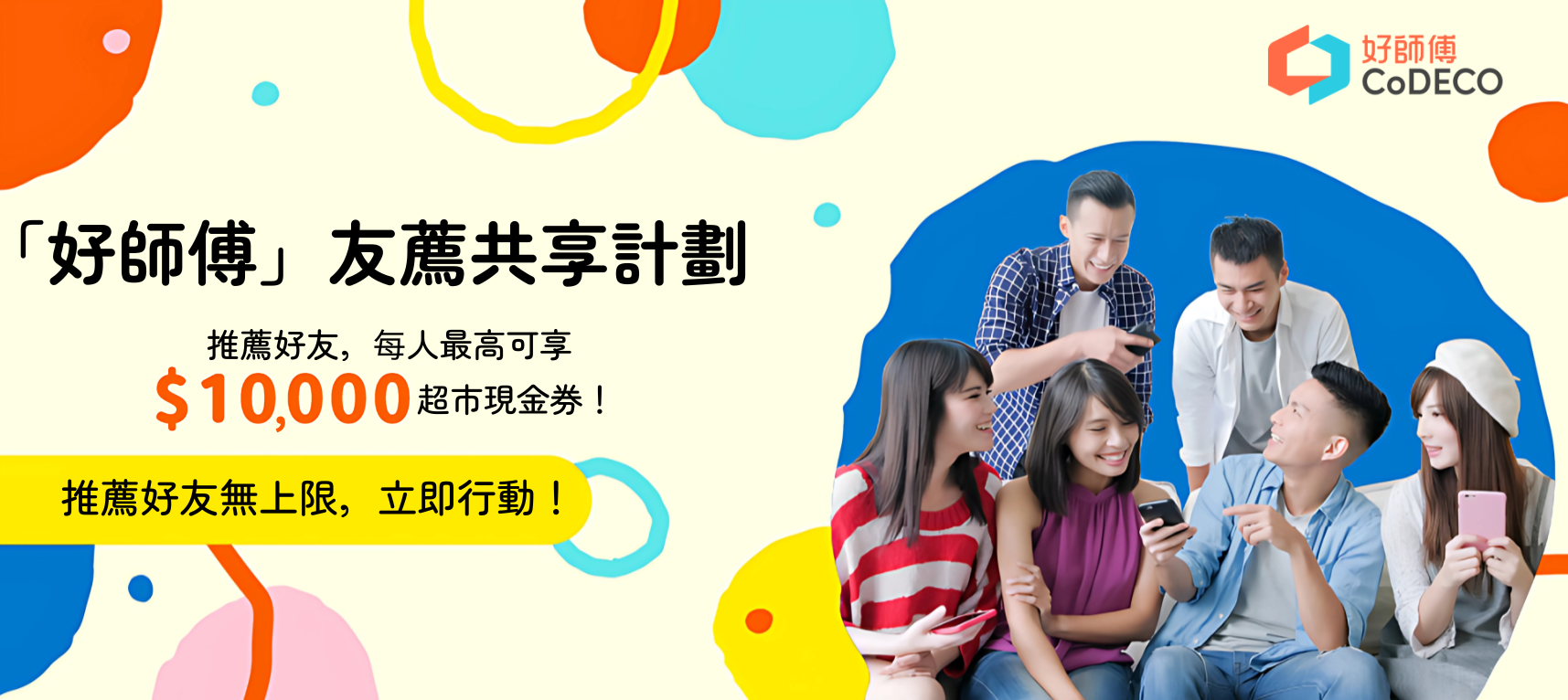 推薦好友使用「好師傅」裝修配對服務,不僅能幫助他們找到夢想中的理想師傅,更能讓您們雙方一同賺取豐厚獎賞!