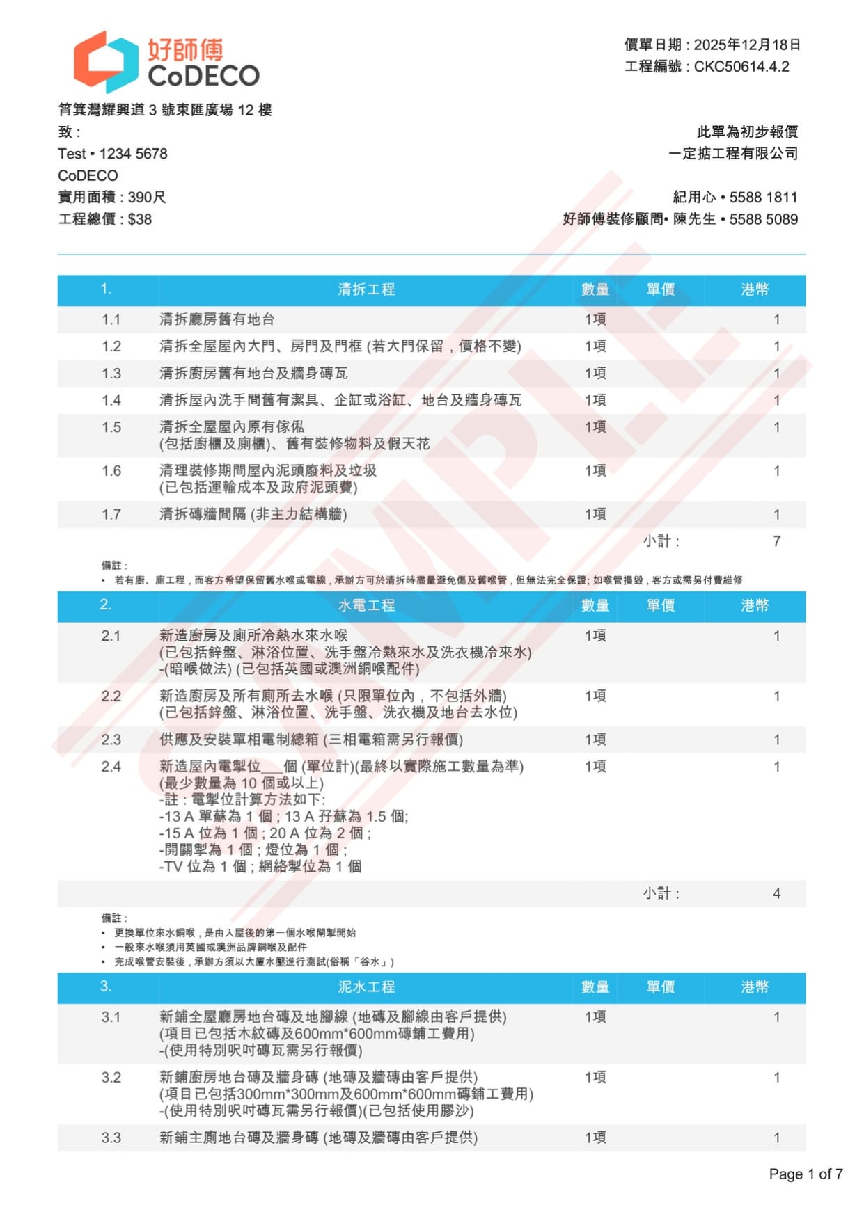 裝修公司每份報價單,均由好師傅專人審核,確保各工程項目清楚詳盡,條款清晰,價錢合理沒有隱藏收費及任何報價陷阱,並以統一格式方便格價。