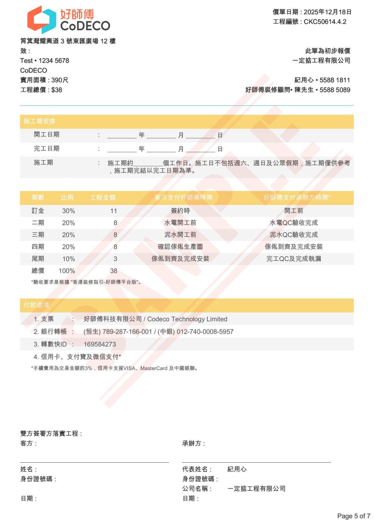 除此之外,工程費用大部分在於人工,而人工亦影響手工質素,因此報價單列明「驗收標準」,再由驗收人員驗收,才將款項轉交裝修公司,保障品質之餘,更讓你無須擔心付錢後,遲遲未見進度的風險。