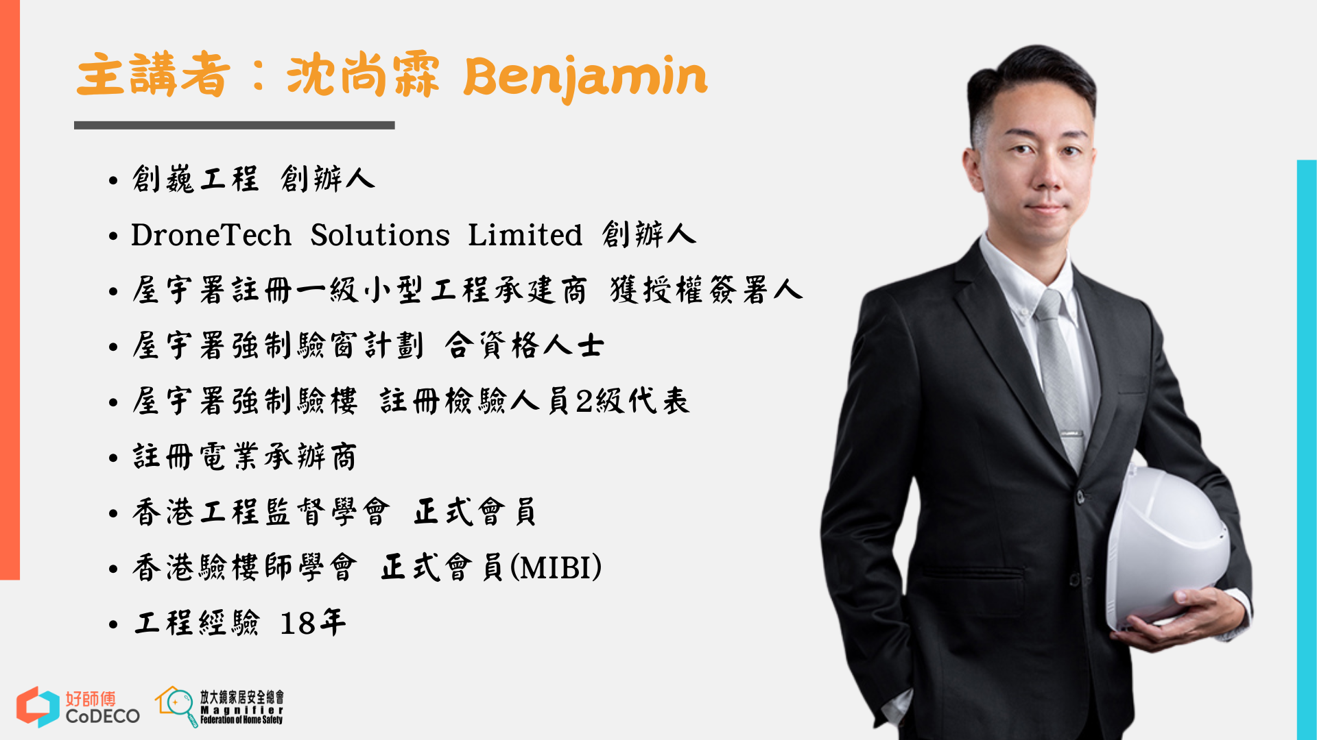 由資深家居維修專家沈尚霖(Benjamin)講解,結合理論知識與實戰經驗。